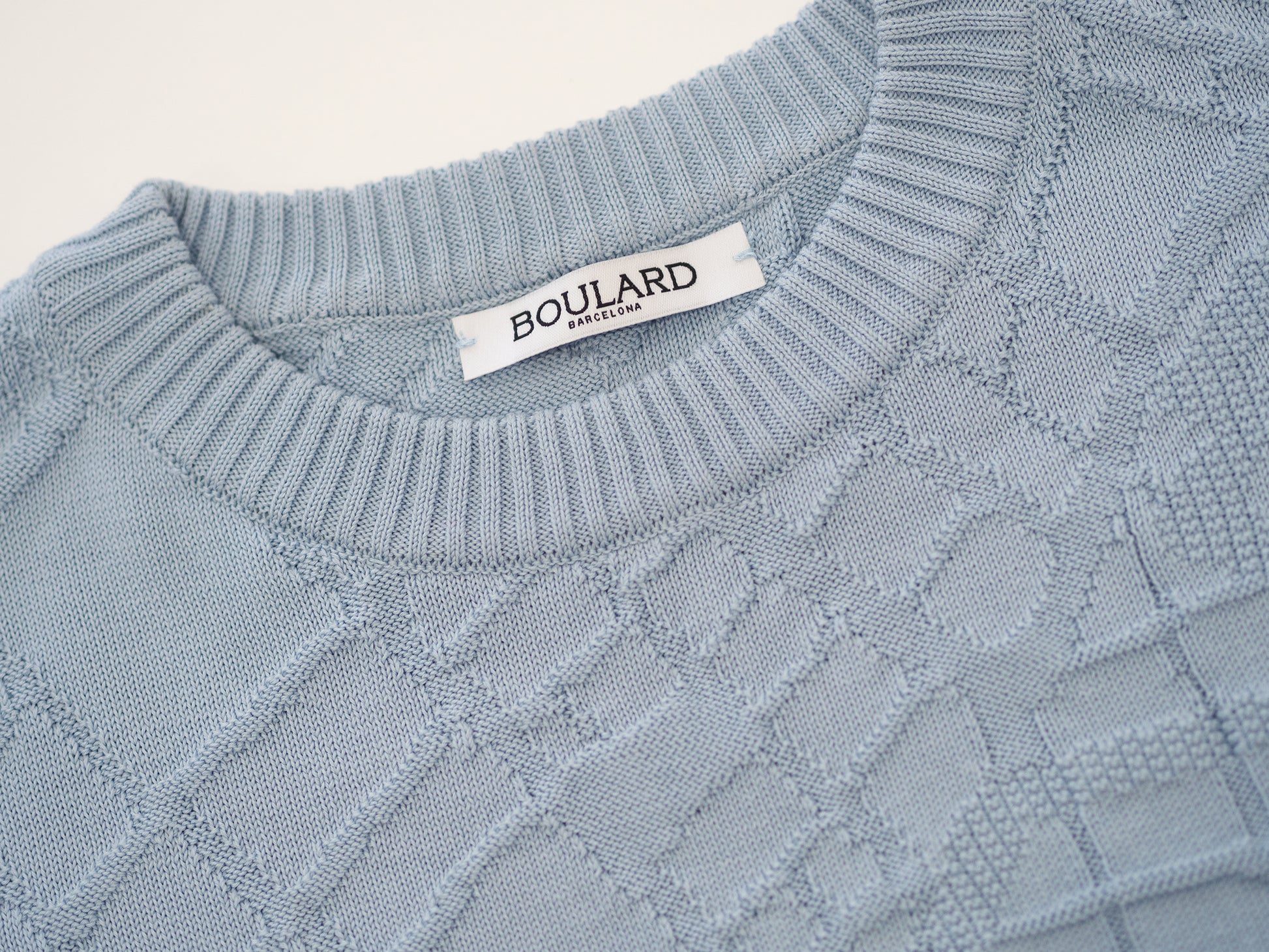 The "Pla Cerdà" sweater is the most iconic basic piece of the collection, a comfortable cold cotton that shines for its knitting technique and the hidden story inside. This garment stands out for its close-fitting cut that highlights the elegant shapes of the human figure. From a distant view it can be seen as a simple piece of a single color, but as the eye gets closer, you begin to appreciate the different changes of light in the garment thanks to the way it has been woven.
