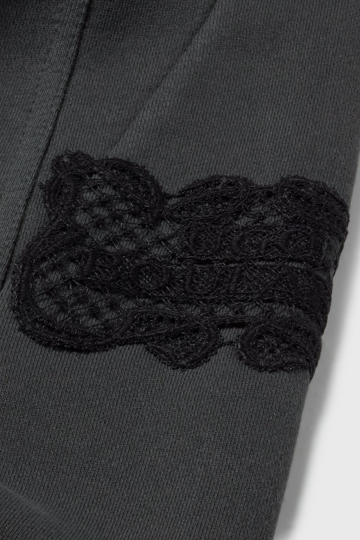 Straight fit tailored sweatpant with a curved seam pattern featuring a spiral cut on the legs. The piece is pigment-dyed, which causes the color to fade with wear and over time, making each garment unique. Its distinctive element is the lace label hand stitched on the left leg.