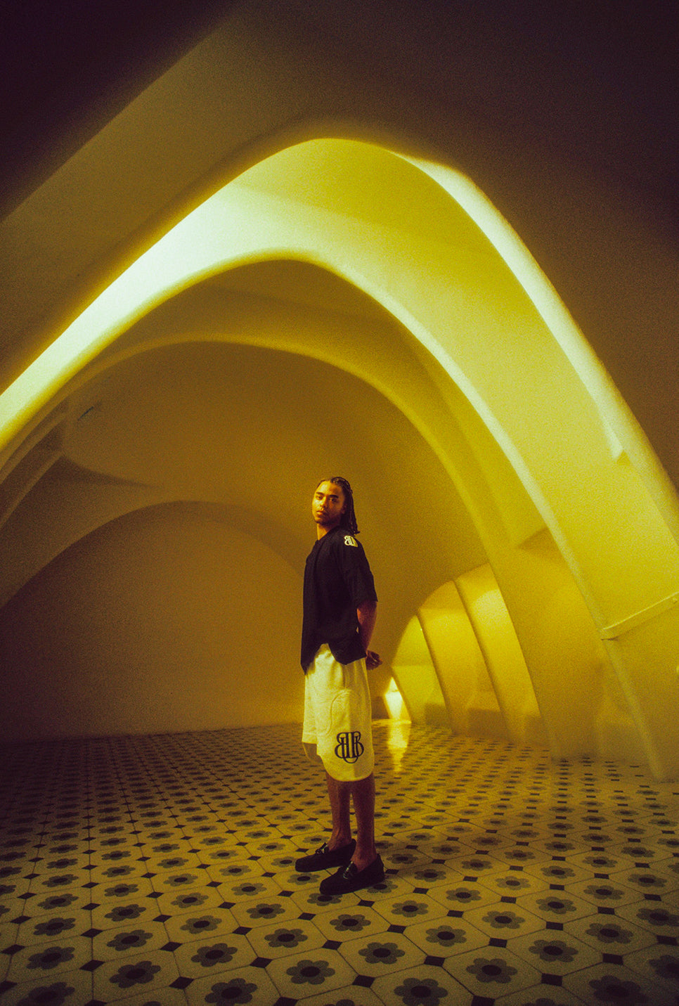 Marked by its curious round cut sides with screen-printed UB logo, the shorts of the collection is the first piece that gives a direction towards the aesthetics of contemporary cuts. A pant made of very comfortable heavyweight cotton.